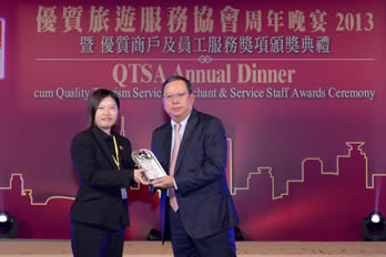 旅遊服務商戶的前線員工,對業界形象舉足輕重,亦代表著香港專業親切的待客之道。為表揚「優質旅遊服務」計劃認證商戶的傑出員工,今年旅發局特別推出「傑出優質商戶員工服務獎」,以肯定他們對香港旅遊業的貢獻。「傑出優質商戶員工服務獎」包括餐飲及零售行業, 分不同組別進行, 由三個階段的評選過程產生,包括首輪篩選、小組面試和評判團面試。而最後的評判團面試將選出每個獎項類別的金、銀、銅獎得主。